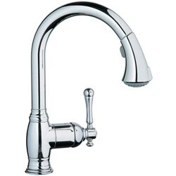 I remember a yesterday. I saw Grohe Bridgeford Single-handle Chrome Kitchen Faucet selling at many of the online store. Complete your remodeling project with this Bridgeford kitchen faucet. With a chrome finish, this stainless steel faucet by Grohe features a 56-inch pullout hose and a 360-degrees swiveling spout. Faucet type: Kitchen Number of handles: Single-handleFaucet finish: Chrome Faucet style: Pullout Handle shape: LeverSpout reach: 8.1875 inches Faucet height: 11.625 inches Ceramic cartridge56-inch extractable hose360-degree swivel spoutDual spray control switches back and forth between regular flow and spraySpeedClean anti-lime systemVariable handle positioningFlow rate: 2.2 ... Read more Compare prices from different online stores: Here
